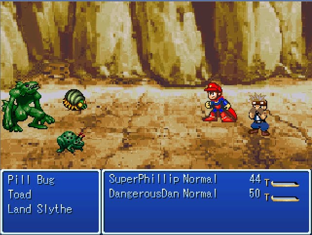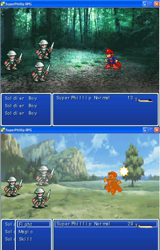 On today, Wednesday April 28th, 2010, it is my pleasure to announce that SuperPhillip: The Crystal Quest, the upcoming blockbuster RPG starring SuperPhillip (not intended to be about the life of this blogger, but about a childhood creation of mine) and friends is out of hiatus and being worked on again! It's back to making new maps, balancing the gameplay, and creating new scenarios. I'd like to share a bunch of photos (both old and new) showing off new maps, screens, and other odds and ends. Enjoy!