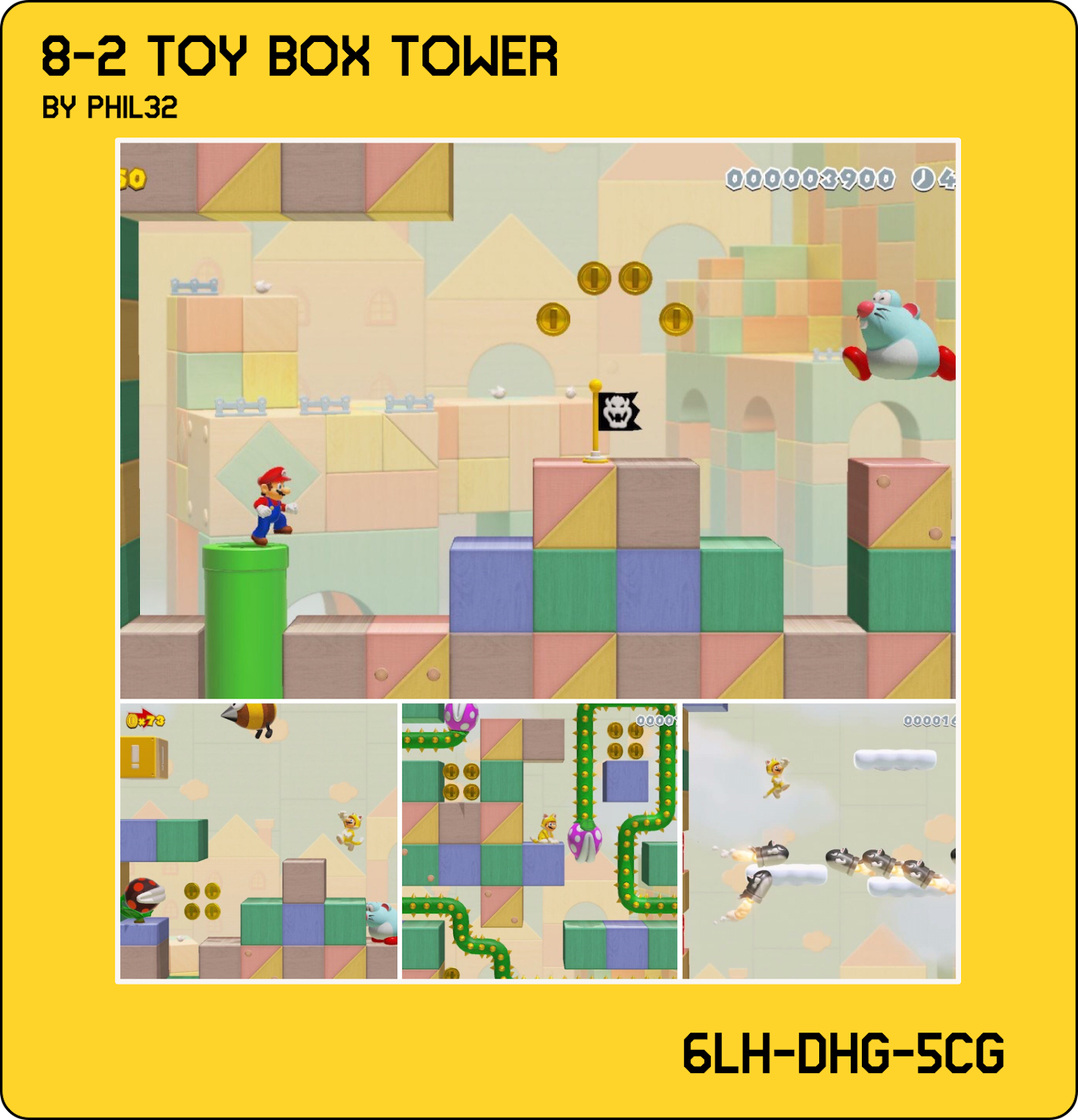 The Toads of the Mushroom Kingdom guard once used Toy Box Tower as their output to keep an eye on Bowser and his troops, but one day the King of the Koopa and his forces took over the tower from Toad control. Now, it's a perilous climb to the top, but it's one Mario must make if he wishes to move forward.